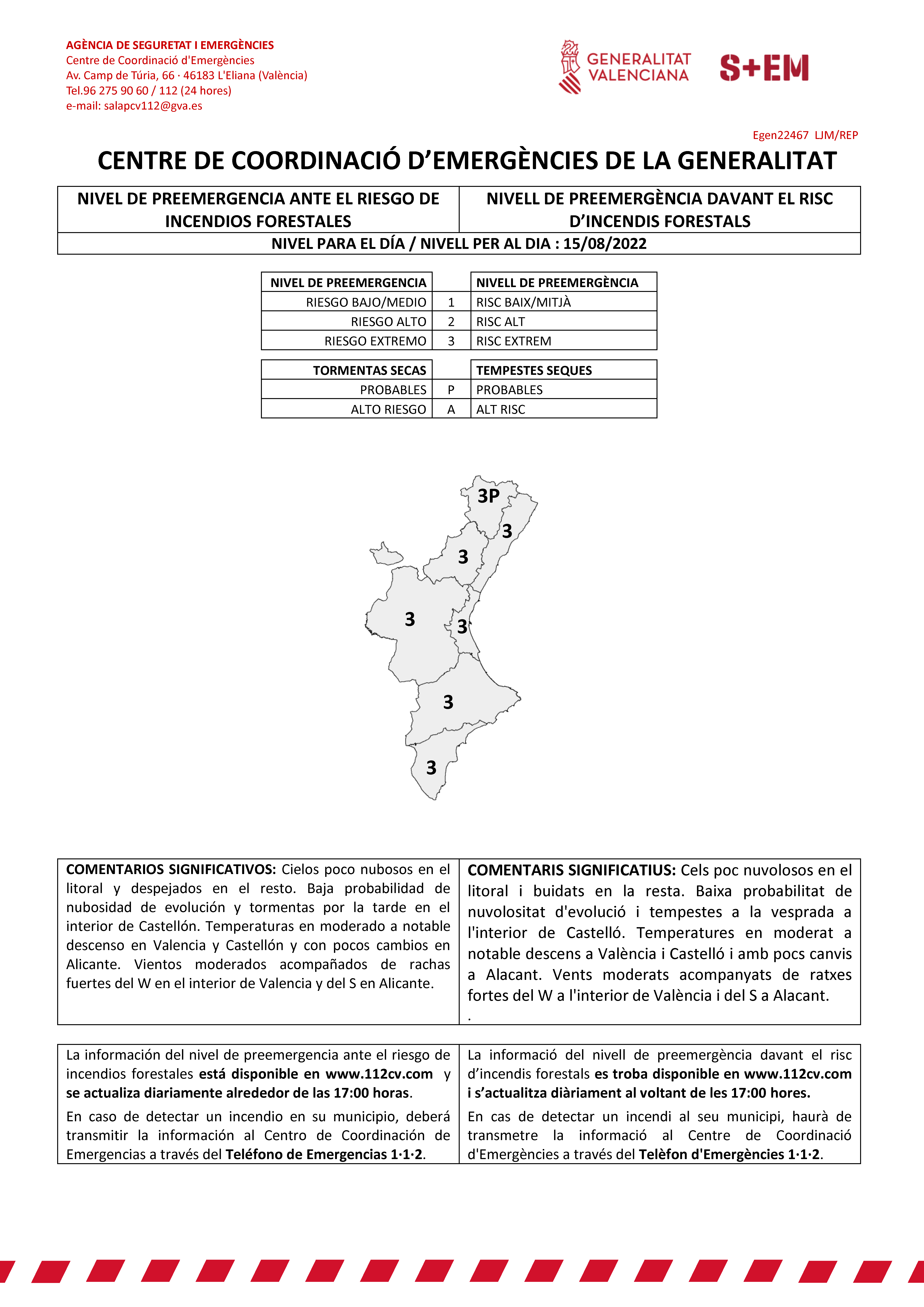 Para conocer el nivel de preemergencia por incendios forestales: www.112cv.com
